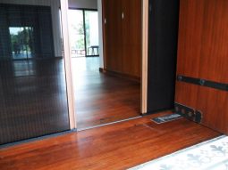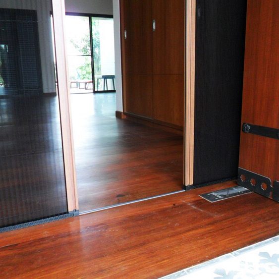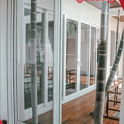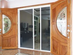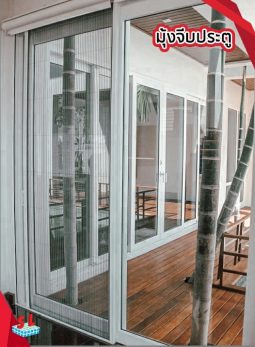มุ้งพับจีบรางเตี้ย มีรางล่างบางกว่าด้านอื่น เหมาะสำหรับชุดมุ้งประตู ป้องกันการเดินสะดุด