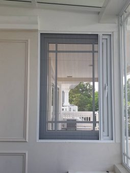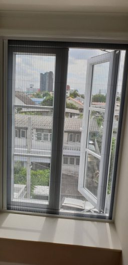 มุ้งพับจีบรางตะขาบ ไม่มีรางล่าง ด้วยเทคนิคการซ่อนราง ทำให้ดูเรียบร้อยสวยงาม เดินไม่สะดุด